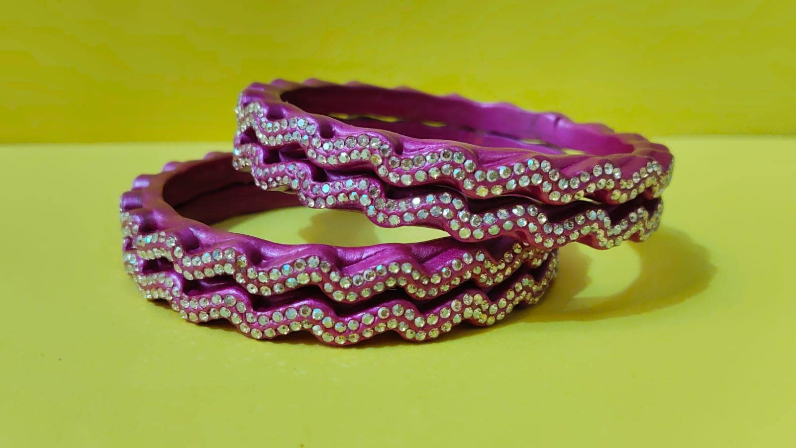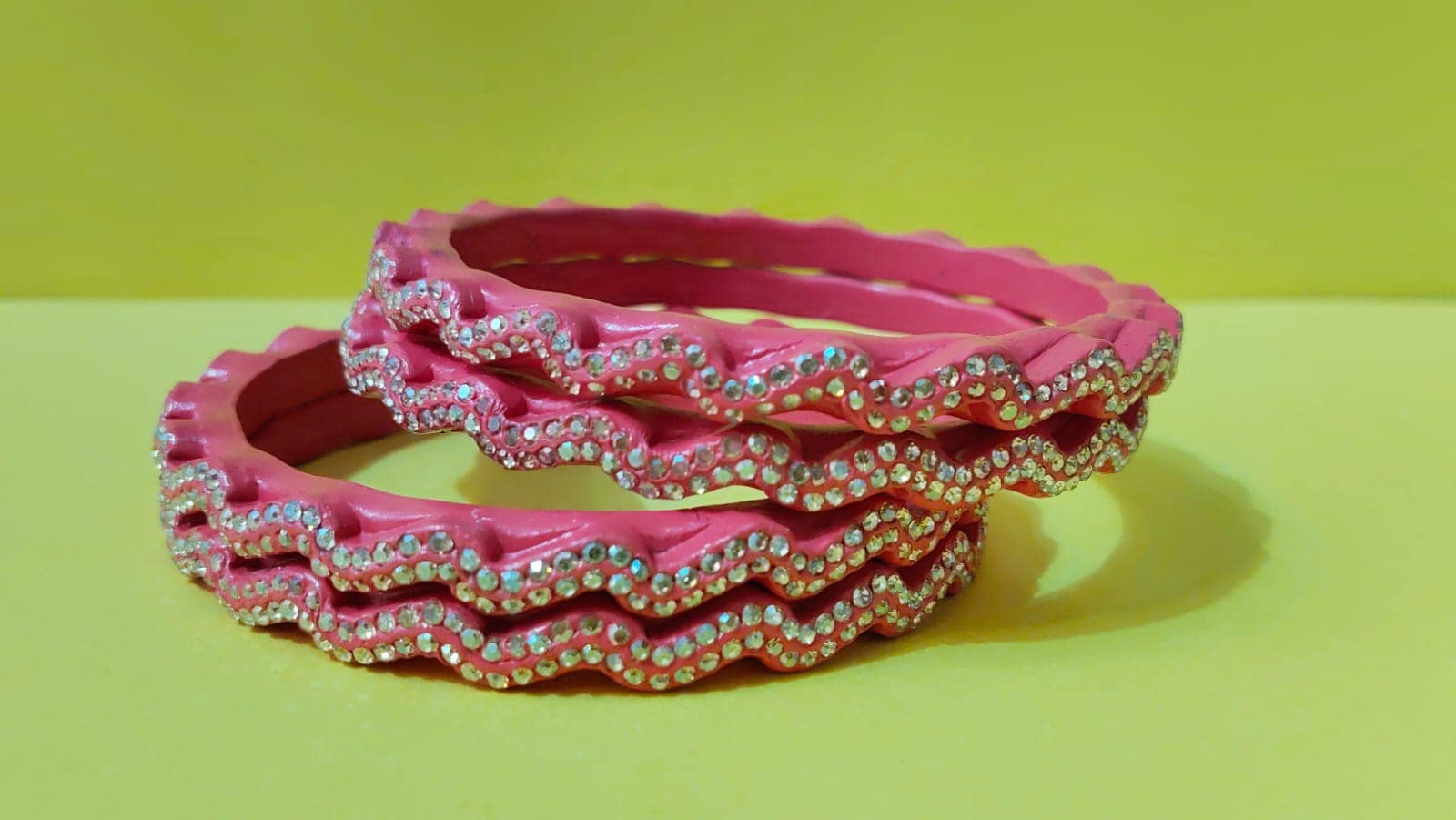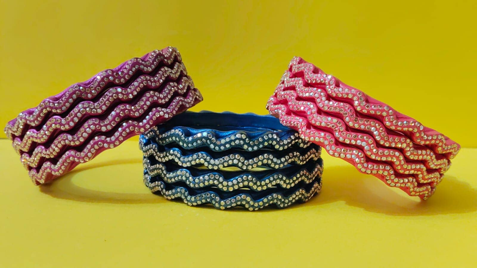• Material: Made with pure lac with shining beads and comes in a wavy or zig-zag-like design.