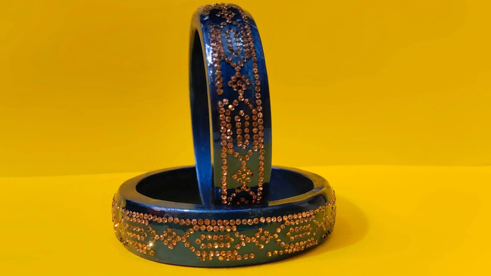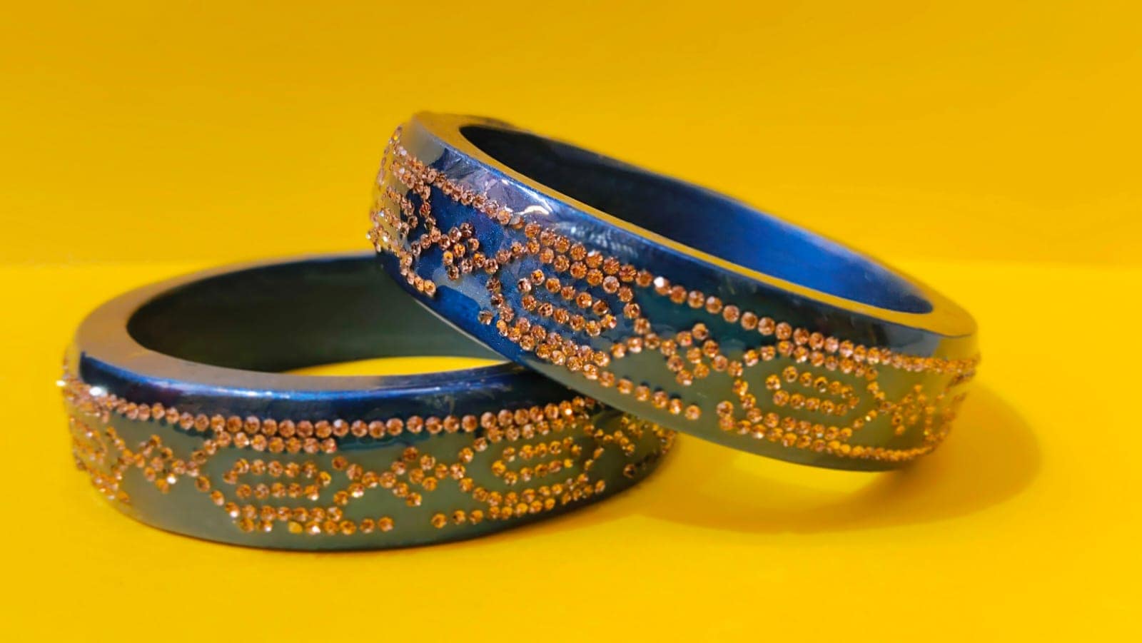 Thank you for reading this post, don't forget to subscribe!This Blue Stone bangles come in the Rich midnight Sparkle shade this Rich blue colour gives a luxurious look to your beautiful hands Smile this Golden stones add a graceful sparkle that catches every I to this beautiful bangle This beautiful handicraft design reflect the true Indian artify and make it one of the most fancy bangles that you have to buy online Due to this it’s come in the fancy bangle online shopping collection.